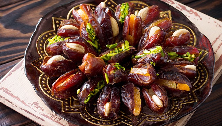 Kurma yang diisi atau tanpa isian juga sangat enak dibungkus dengan daging sapi atau prosciutto. Sajikan ini dengan tusuk gigi pada perayaan Idul Fitri!